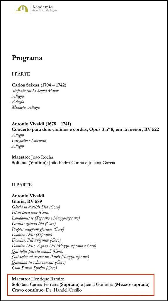 Violin Soloists: João Pedro Cunha and Juliana Garcia