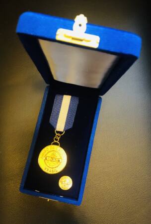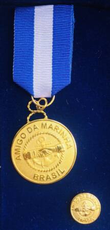 The Friend of the Navy Medal was created in August 1966, to reward civilian personalities, without a functional link with the Brazilian Navy, soldiers from other forces, as well as institutions that have distinguished themselves in the work of spreading the maritime mentality, in the relationship with the Navy, in the defense of interests related to the Navy and in the dissemination of the importance of the sea for the country.