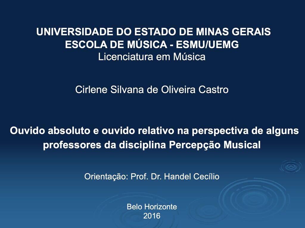 Absolute ear and relative ear in the perspective of some teachers of the discipline Musical Perception – TCC – UEMG