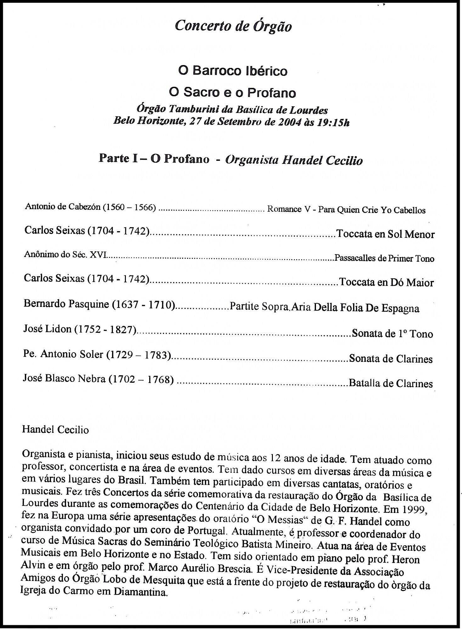 Part I – The Profane – Organist Handel Cecilio