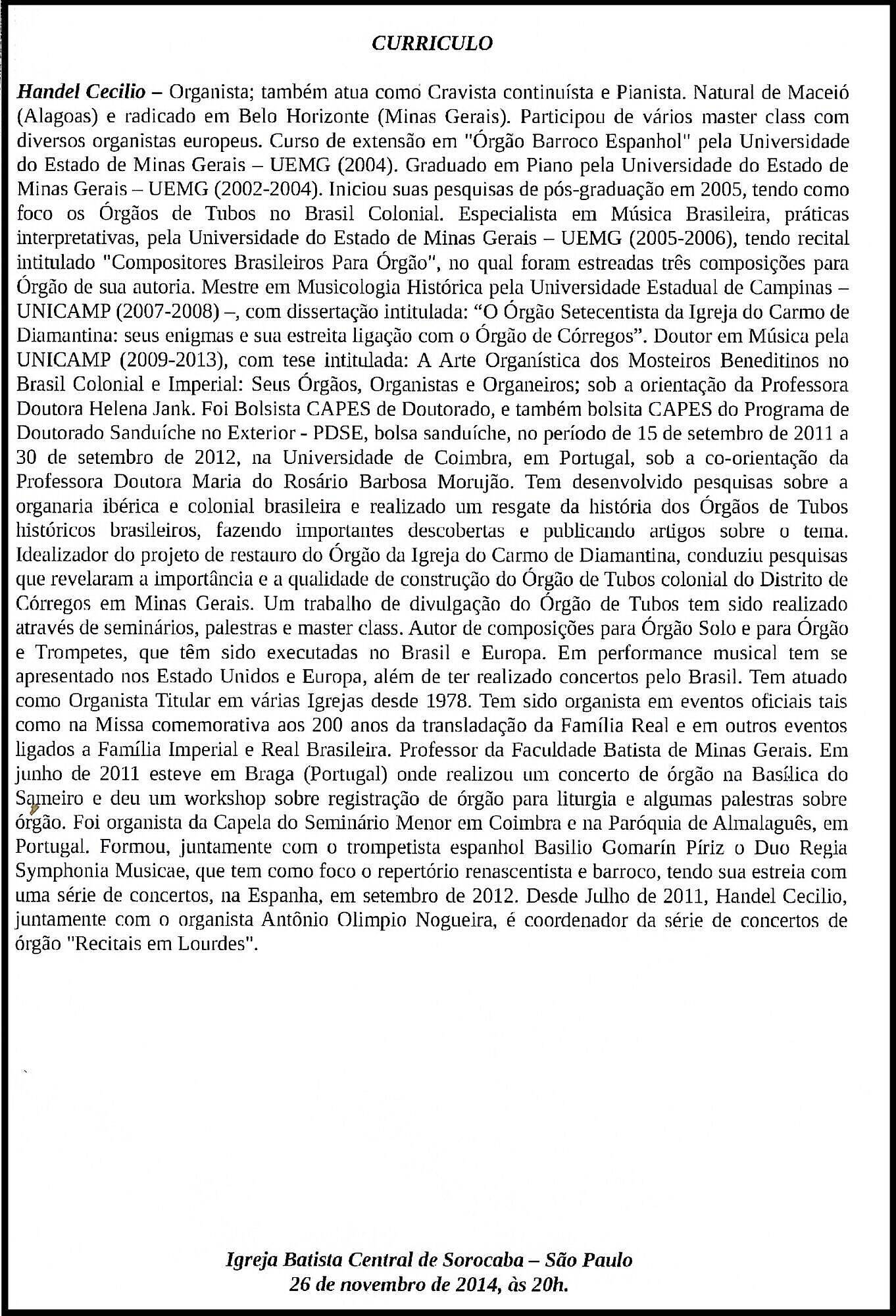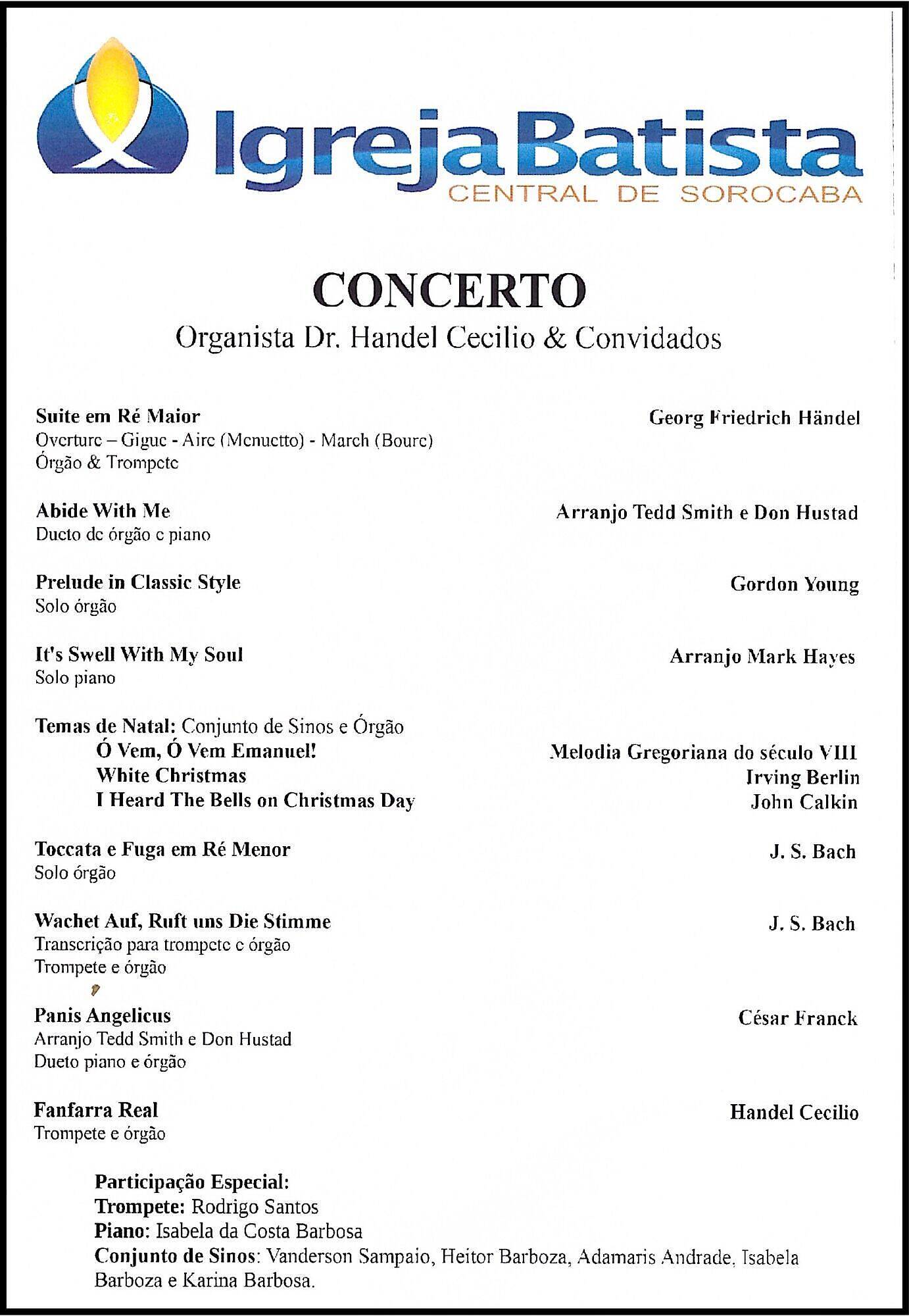 CENTRAL BAPTIST CHURCH OF SOROCABA: Organ concert with Organist Handel Cecilio & Friends