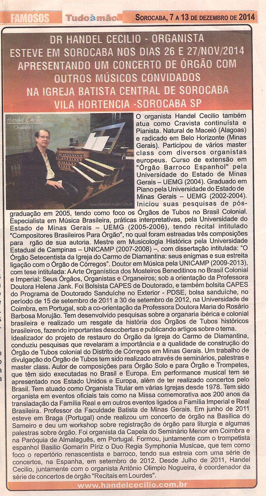 CENTRAL BAPTIST CHURCH OF SOROCABA: Organ concert with Organist Handel Cecilio & Friends