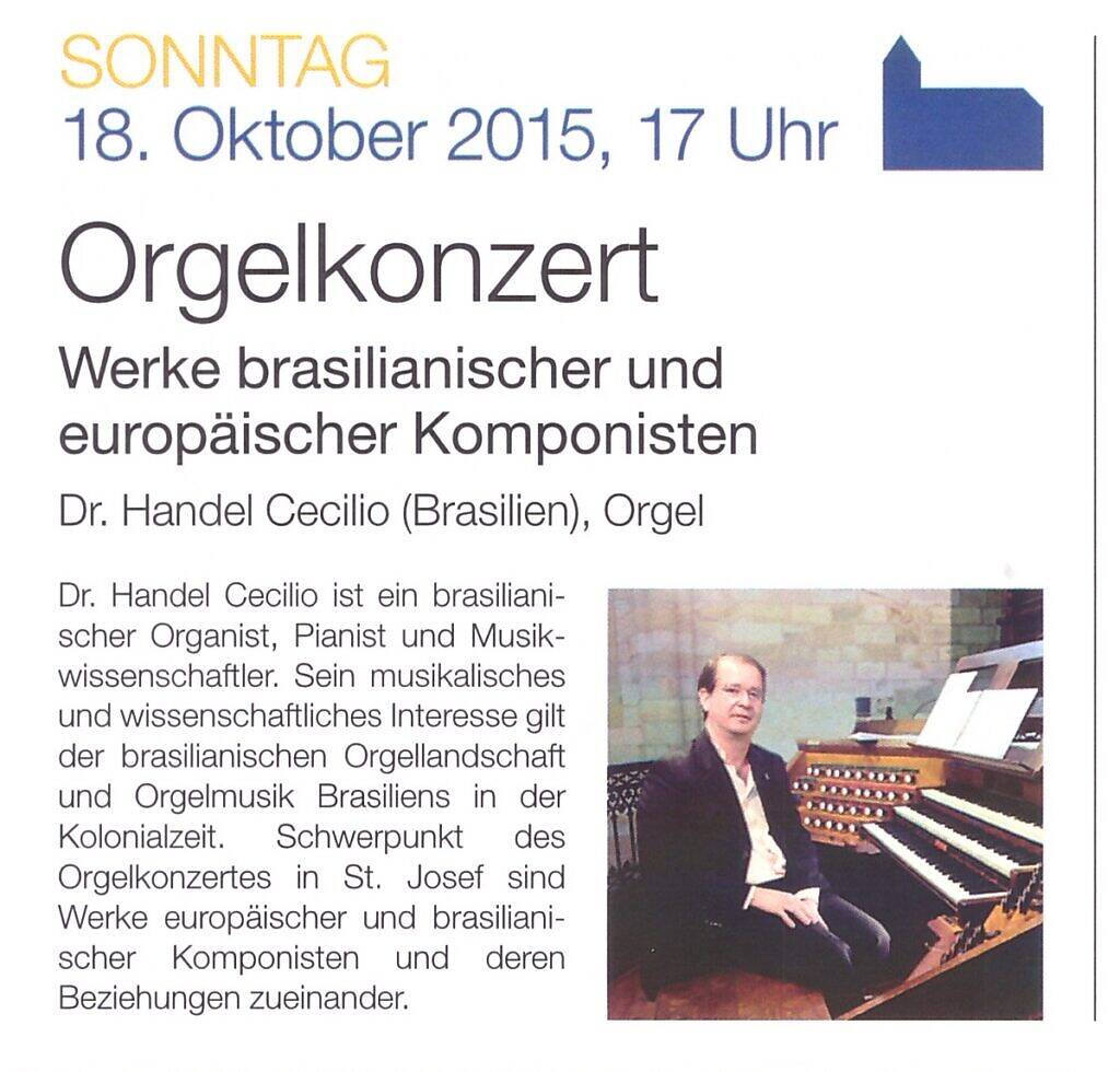 Special participation of the organist of this church Tobias Segsa in the play “Baião Para Órgão (Baion for Organ)”
