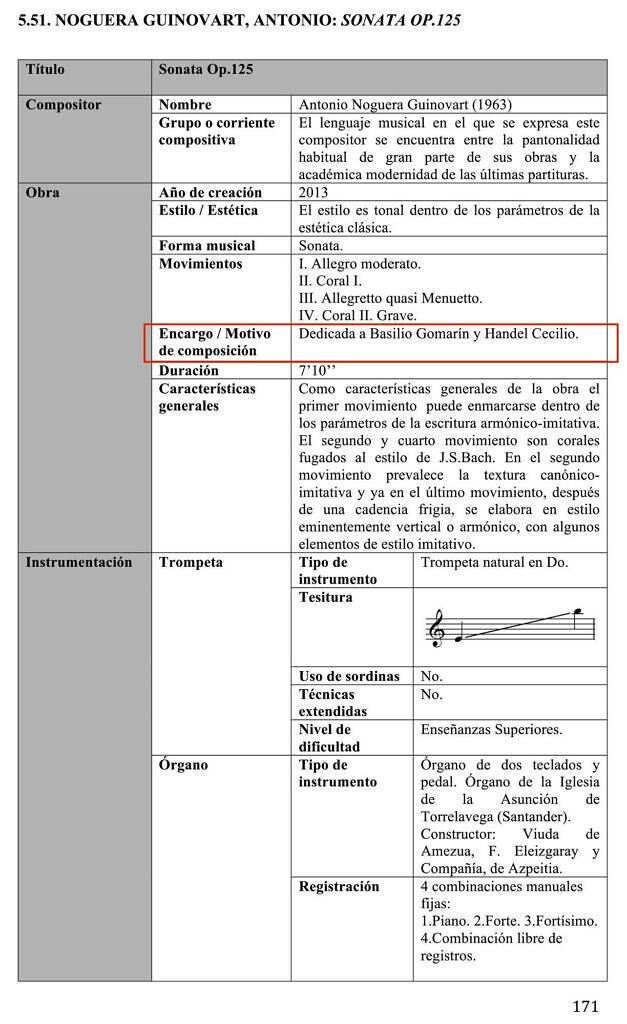 | Work. | Request / Motive for composition | Dedicated to Basilio Gomarín and Handel Cecilio. |