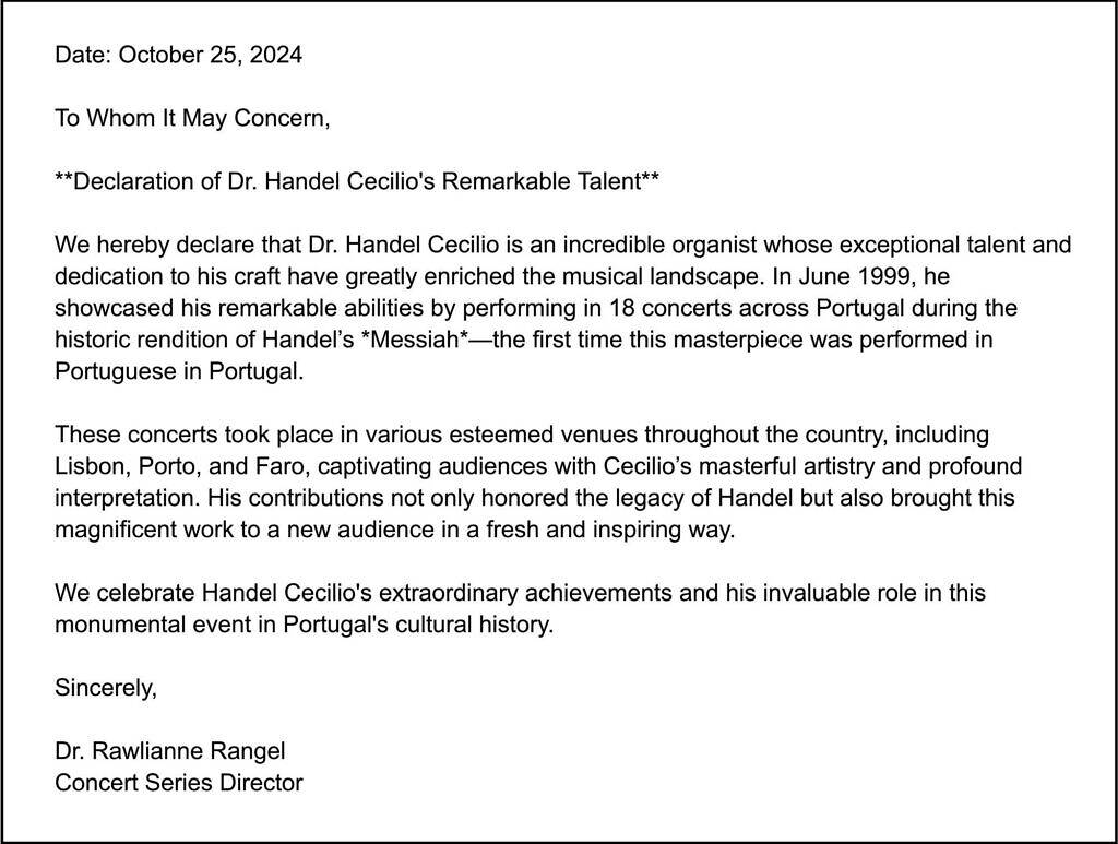 Due to the absence of the physical programs of the concerts, the conductor has kindly issued a supporting document attesting to my participation and artistic contribution throughout this musical journey.