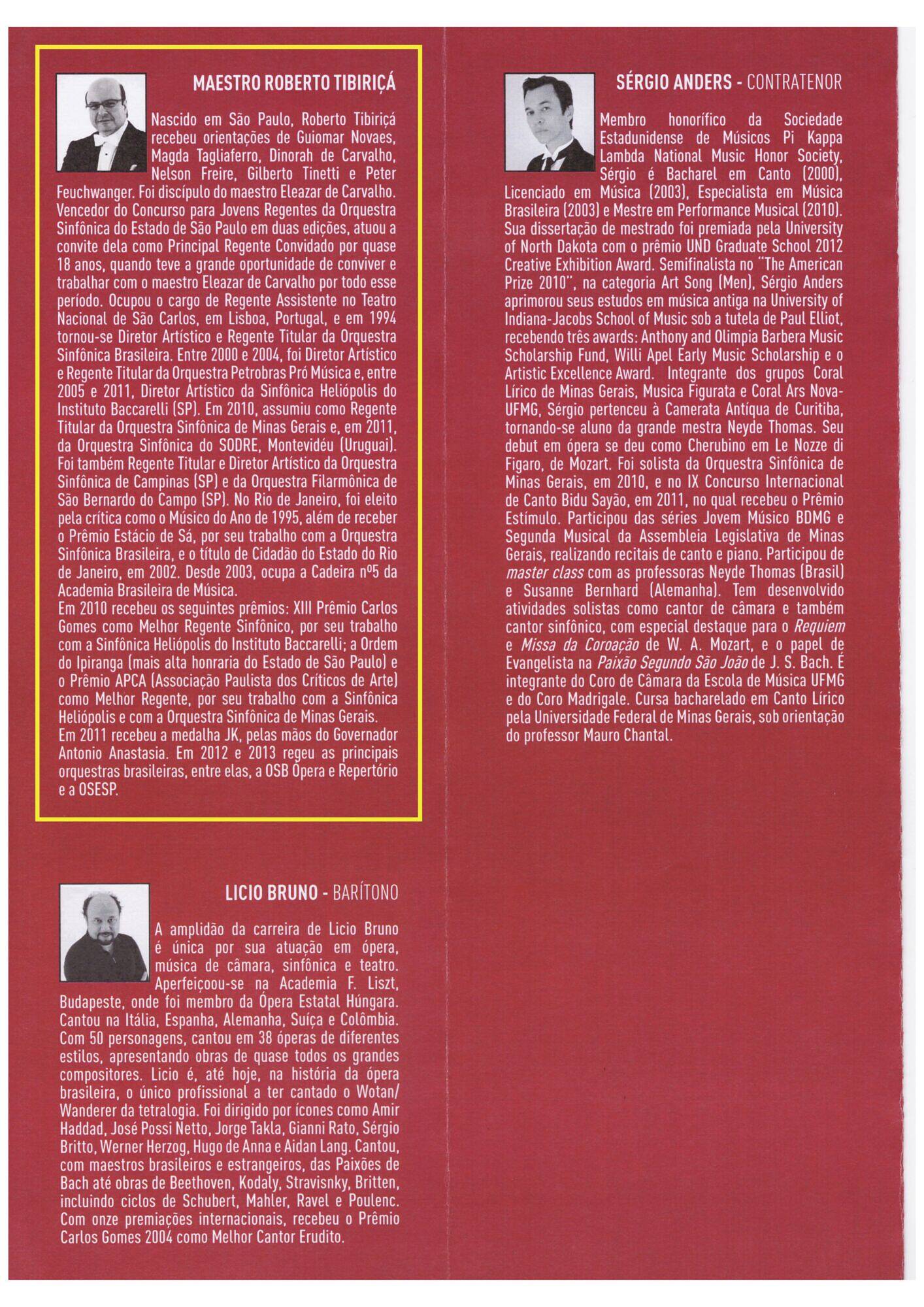 Solists: Sérgio Anders (contratenor) e Licio Bruno (barítono)