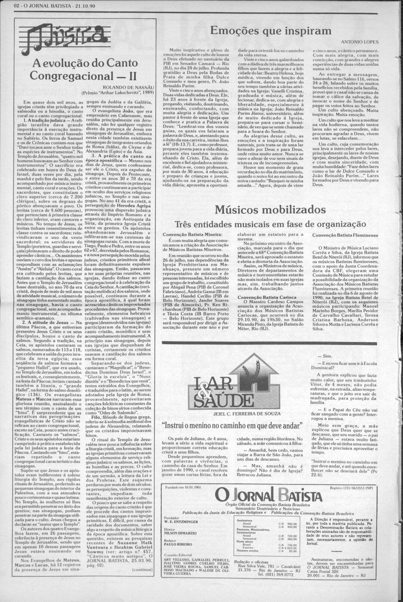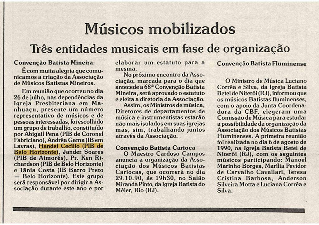 JORNAL BATISTA: “Musicians mobilized” * Organist Handel Cecilio on the organization and board of the Association of Baptist Musicians of Minas Gerais.