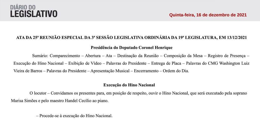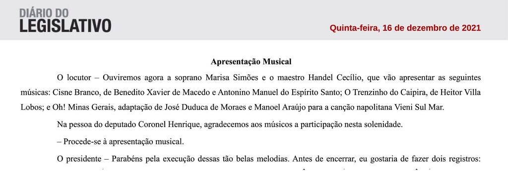 In the person of Deputy Coronel Henrique, we thank the musicians for their participation in this solemnity.
