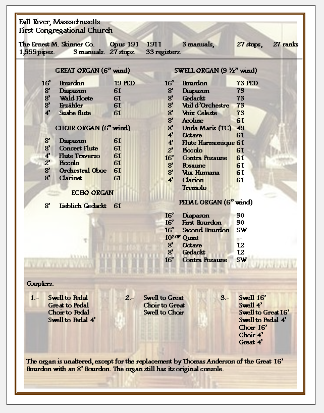 Lunchtime Organ Recital – First Congregational Church of Fall River – NOV 2022 – USA