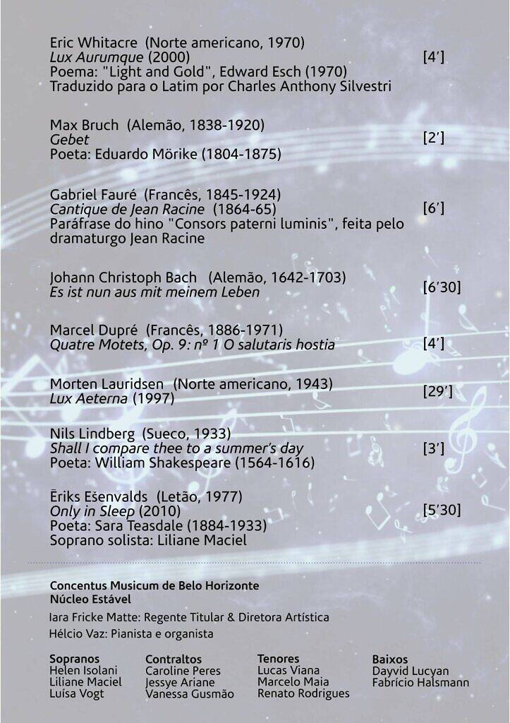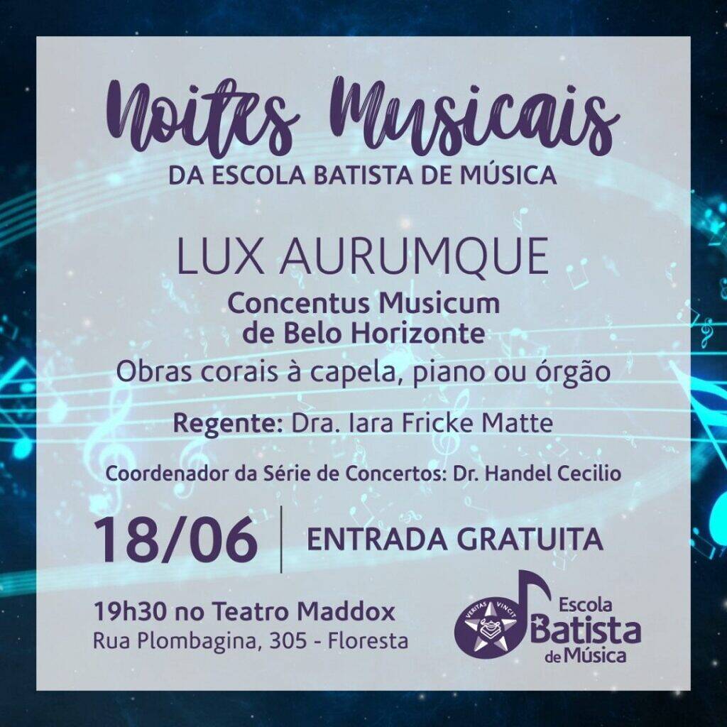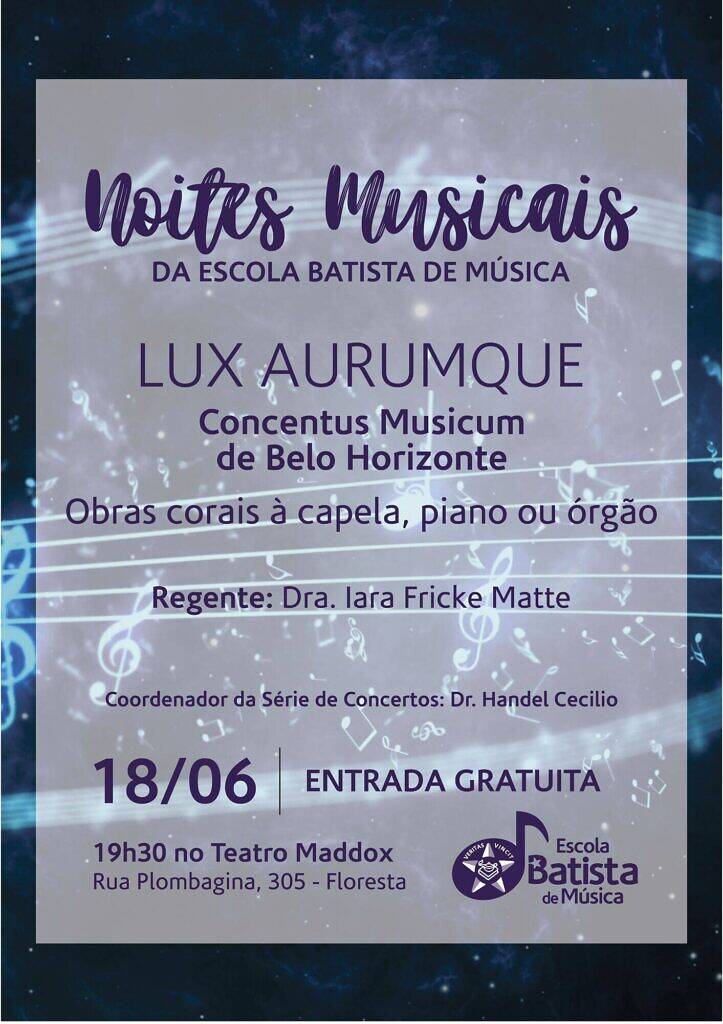 MUSICAL EVENINGS OF THE BAPTIST SCHOOL OF MUSIC: LUX AURUMQUE * With Concentus Musicum de Belo Horizonte * Centenary Year of the Baptist School of Minas Gerais – 2018