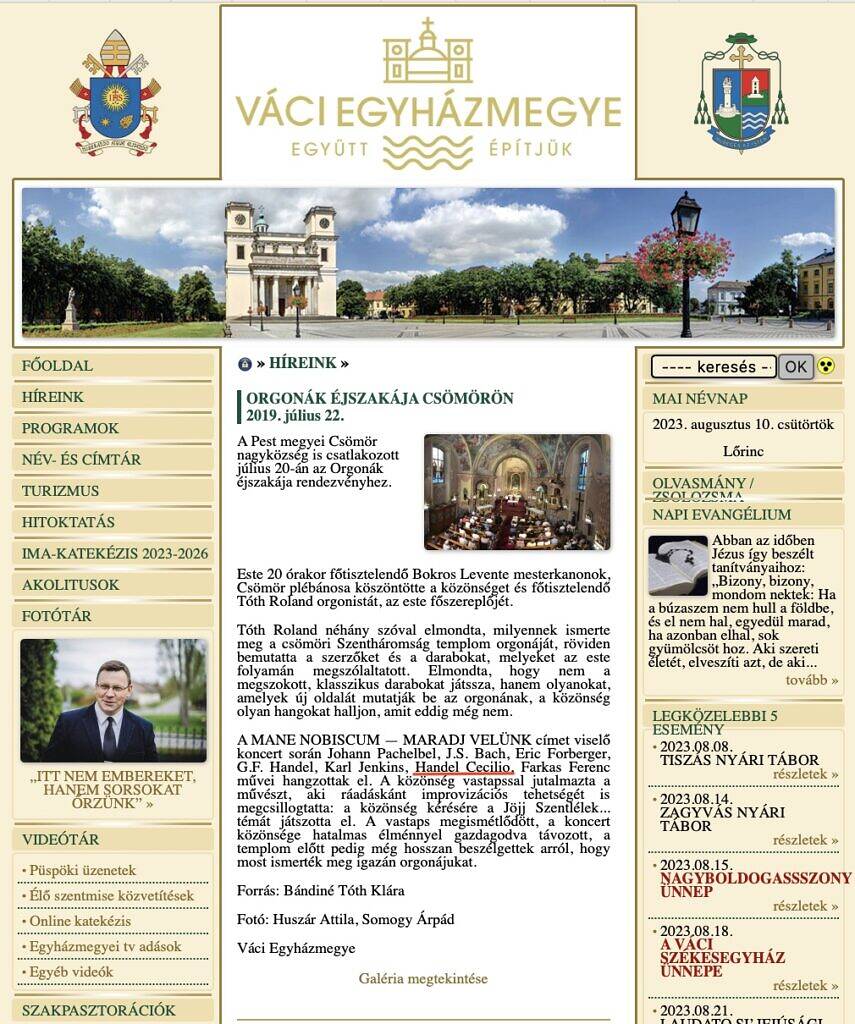 DIOCESE OF VAC: Night of Organs in Csömör * With Royal Fanfare by Handel Cecilio – HUNGARY