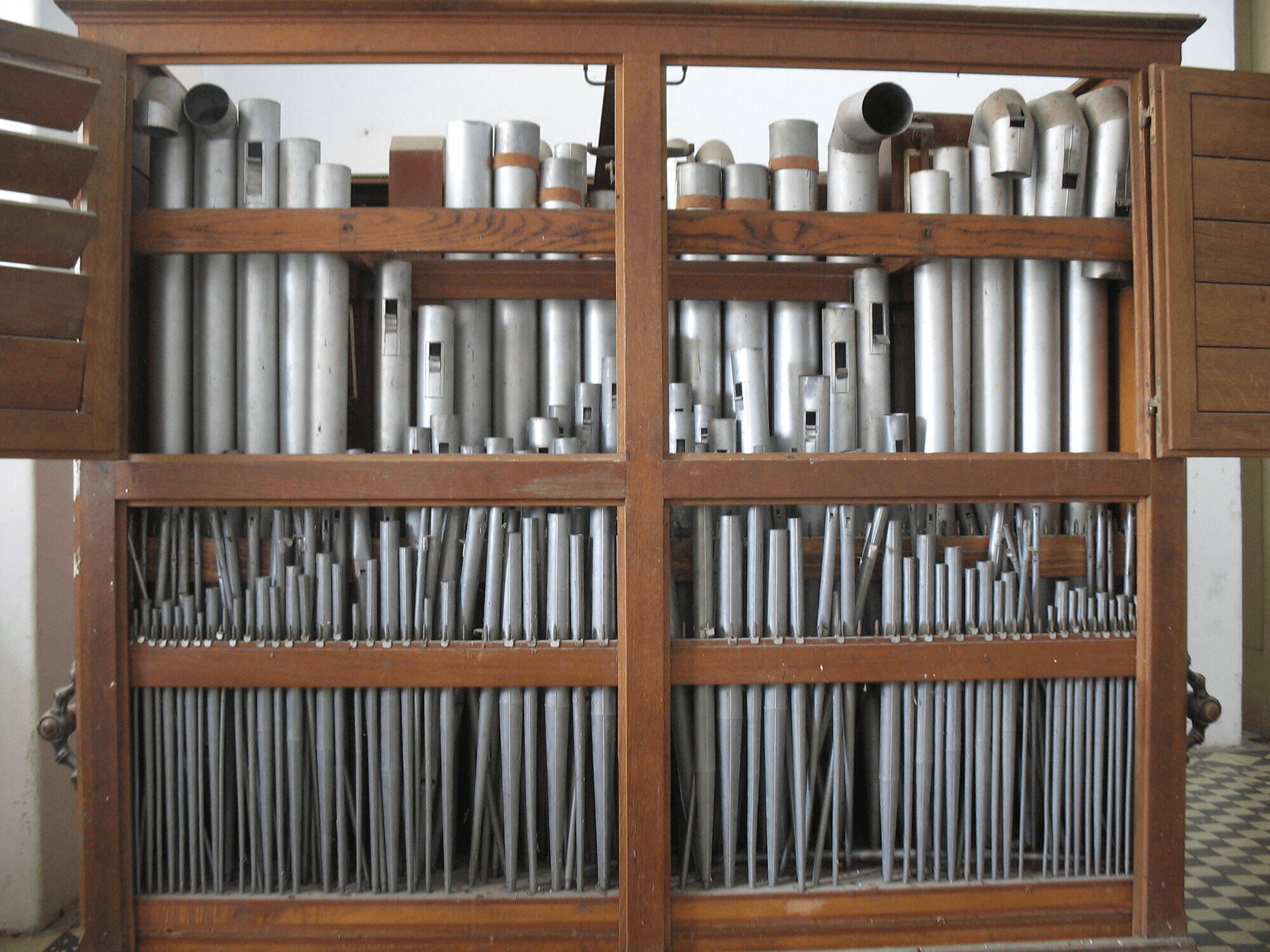 A field research photo of the only pipe organ found in the State of Alagoas-Brazil, in the Mother Church of the city of São José da Lage.